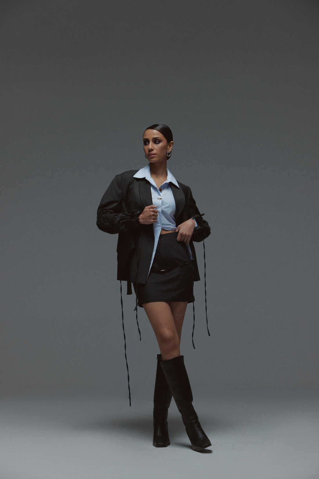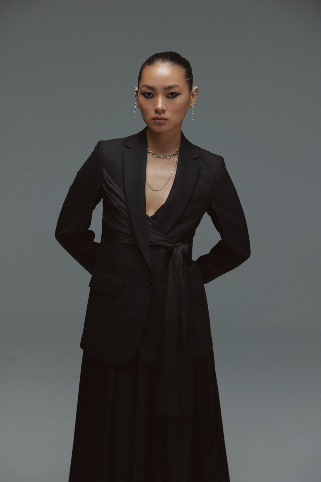 A bold reimagining of classic tailoring the Night at the Cinema set merges structured elegance...