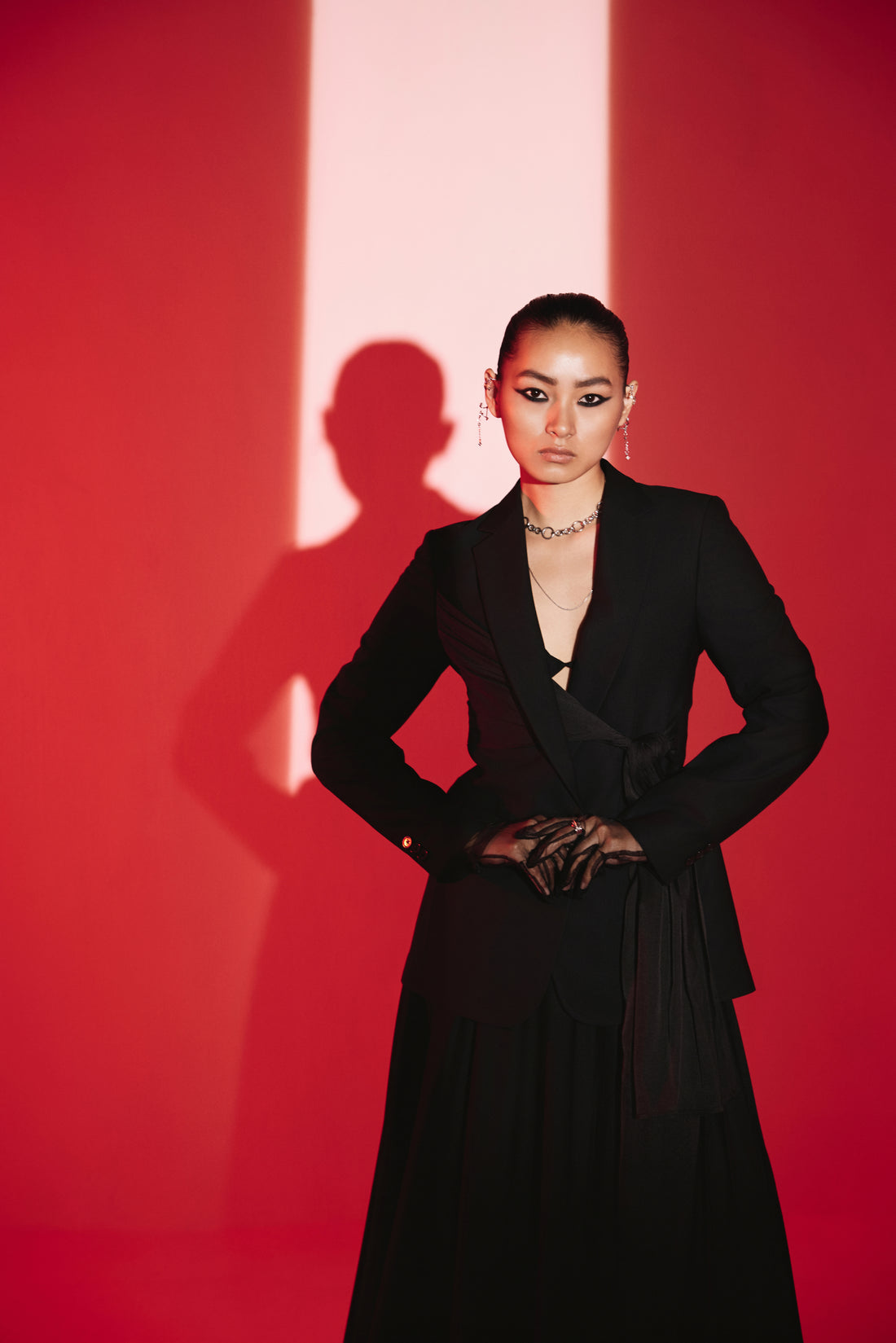 A bold reimagining of classic tailoring the Night at the Cinema set merges structured elegance...