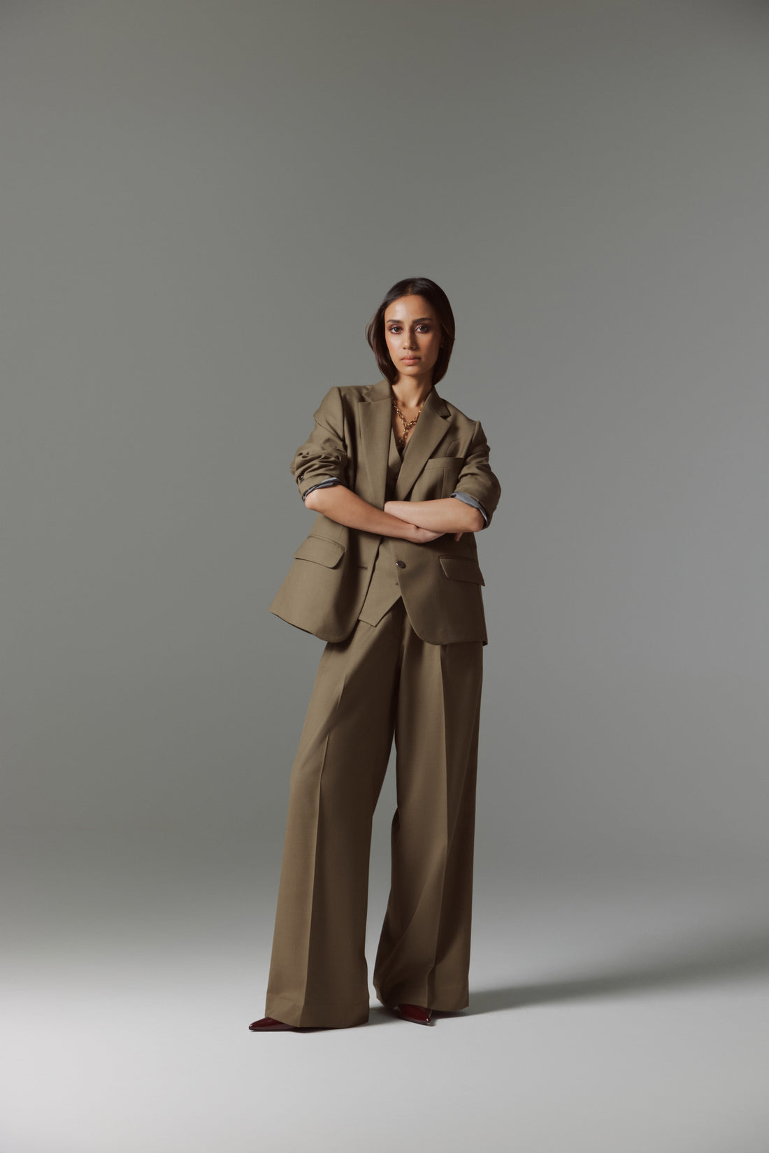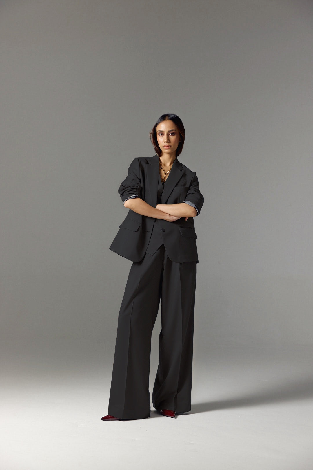 A contemporary take on power dressing, the Gaia Suit embodies confidence and effortless sophistication. The set...